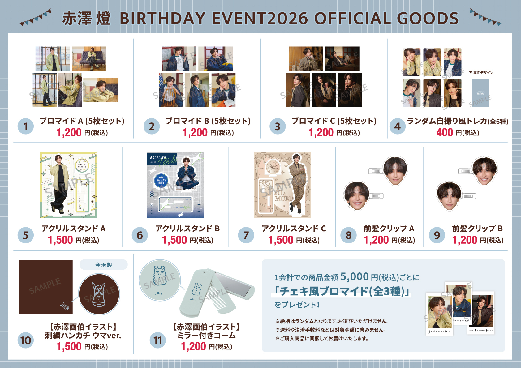 ※特典「チェキ風ブロマイド(全3種類)」は1会計での商品金額5,000円(税込)ごとに1点同梱させていただきます。